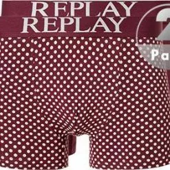 Replay Trunks 2er Pack I101194/N202 Baumwoll-Stretch, Bordeaux-beige gepunktet, Bordeaux-hellgrau