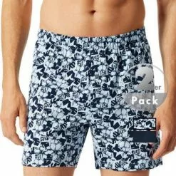 Schiesser Boxershorts 2er Pack 176828/908 Baumwolle, Dunkelblau-bleu gemustert, Dunkelblau-hellblau